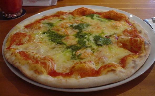 ぷりぷりした海老とオリーブオイルたっぷりの釜焼きピッツァは、本場ならではの味でした。